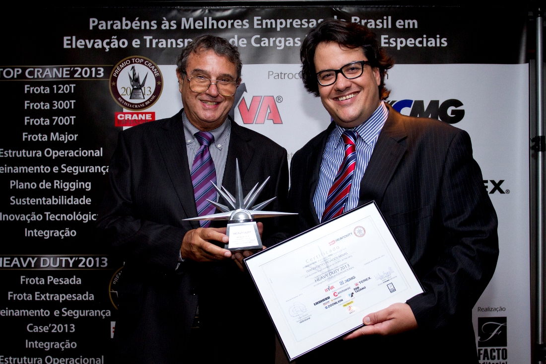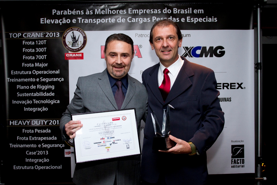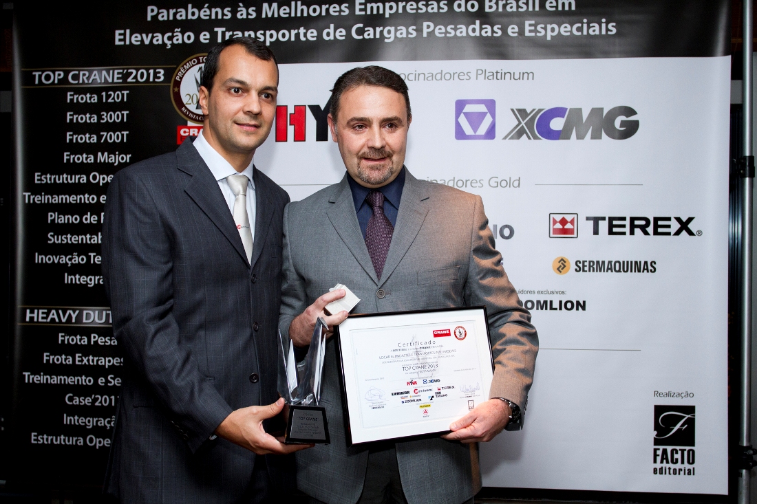 Fernando Rodrigues, fundador da Makro Engenharia, empresa Top Crane’2013 nas categorias Frota 120 T e Sustentabilidade, destacou o significado da premiação para o setor, lembrando que incentivou sua realização desde o início, há 4 anos: “Minha única ressalva é que, além de São Paulo, ele passe a ser feito em outras capitais do País”. Para Denys Garzon Rodrigues, diretor da Guindastes Tatuapé, que venceu a categoria Frota 300 T, “é muito importante ganhar um prêmio tão reconhecido no segmento de locação de guindastes quanto o Top Crane”.