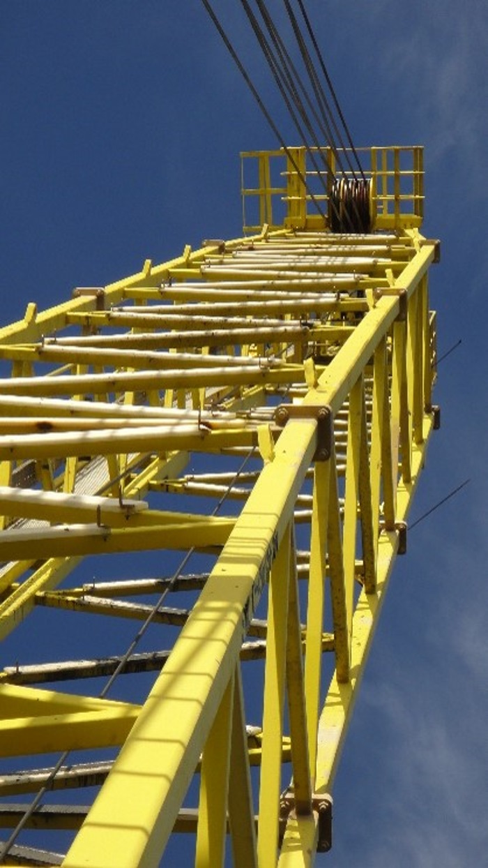 A lança de um guindaste offshore, como a da Figura 1, é o componente integrante da estrutura deste equipamento que demanda atenção especial, sendo objeto permanente de observação em vistorias pré-jornada de trabalho, planos de inspeção e de manutenção. Sua integridade e funcionalidade afetam diretamente a disponibilidade desta grande máquina, o que pode comprometer até mesmo a produção de uma instalação.