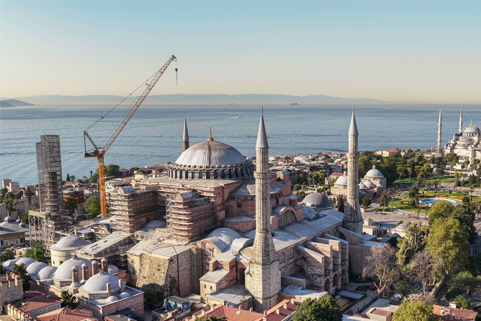 Um guindate torre Liebherr 280 HC-L com lança articulada desempenha um papel fundamental na delicada restauração da Mesquita Hagia Sophia, em Istambul, um dos marcos mais emblemáticos do mundo, com 1.500 anos de história. A Atilla Dural, uma das principais empresas de locação de guindastes torre da Turquia e parceira Liebherr desde os anos 1980, está fornecendo a grua Liebherr 280 HC-L para este projeto extraordinário.