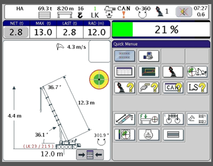 - Sensor de Pressão das Patolas, que permite ao operador acompanhar em tempo real as cargas que estão sendo aplicadas nas patolas nas etapas da movimentação de cargas;