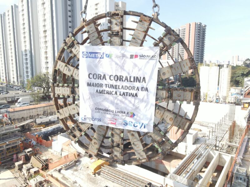 A etapa de remontagem da tuneladora “Cora Coralina”, conhecida como Tatuzão e responsável pela escavação dos túneis da expansão da Linha 2-Verde do Metrô de São Paulo, foi concluída com uma das operações de içamento mais complexas já realizadas no canteiro. Em 17 de outubro, o Consórcio Metrô Linha 2, liderado pela Engibras, finalizou a descida do último carro do sistema de backup – conjunto de estruturas que dá suporte à operação da máquina – utilizando um guindaste Liebherr sobre esteiras, da locadora 3Z, com lança treliçada e capacidade de 750 toneladas.
