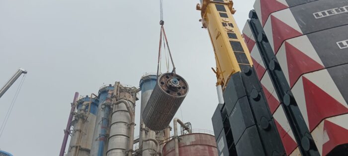 A Darcy Pacheco respondeu, em outubro de 2024, pela movimentação de um Tambor DDW, um componente essencial ao processo produtivo. O equipamento possuía 9,5 metros de comprimento por 5 metros de diâmetro, e sua movimentação exigia içamento a uma altura de 58 metros, em um ambiente industrial com múltiplas interferências e frentes de trabalho simultâneas.