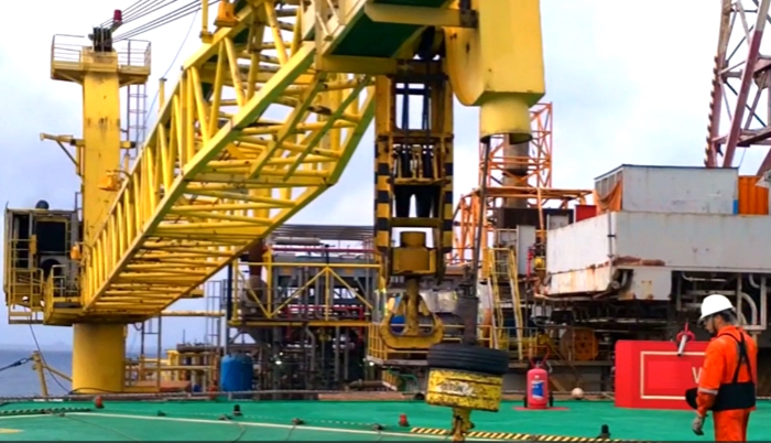 A Figura 2, que mostra a conexão de uma linga de extensão a um gancho de içamento de um guindaste em uma instalação offshore flutuante, representa bem um dos momentos de risco que a que estão sujeitos os profissionais atuantes.