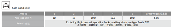 O Guindaste SANY STC1600T7 (conforme a Figura 2 abaixo) atende esta carga máxima por eixo quando são excluídos de sua estrutura os jibs e seus suportes, o pneu estepe, qualquer modelo de moitão e bola gancho, o guincho auxiliar, as sapatas das patolas e qualquer peça de contrapesos.
